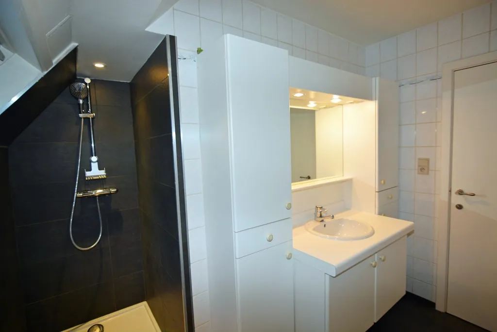 - KELDER: In de gemeenschappelijke kelder is er een individuele autostaanplaats met afsluitbare opbergruimte, deze is bereikbaar via de achterzijde van het gebouw met elektrisch bediende garagepoort of via trappenhal/lift.
