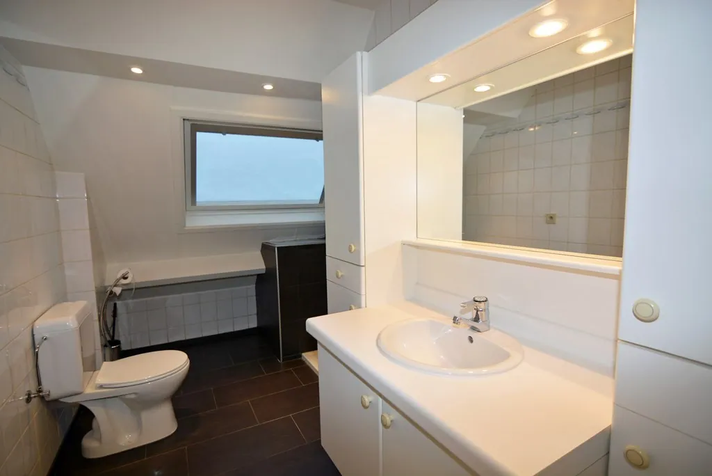 - VERDIEPING 2: Inkomhal, gang met vestiarenis, woonkamer (6,54 x 4,00 m) met schuifraam die toegang biedt tot het terras (3,20 x 1,24 m) aan de achterzijde van het gebouw, ingerichte keuken (4,00 x 3,35 m) voorzien van keramische kookplaat, afzuigkap, koelkast, combi-oven en vaatwasser. Slaapkamer 1 (4,14 x 3,00 m), slaapkamer 2 (4,50 x 2,30 m), slaapkamer 3 (4,20 x 3,50 m), badkamer (3,40 x 1,70 m) voorzien van inloopdouche, badkamermeubel en toilet, berging (2,40 x 1,50 m) met de voorziening voor wasmachine en opbergruimte, apart gastentoilet.