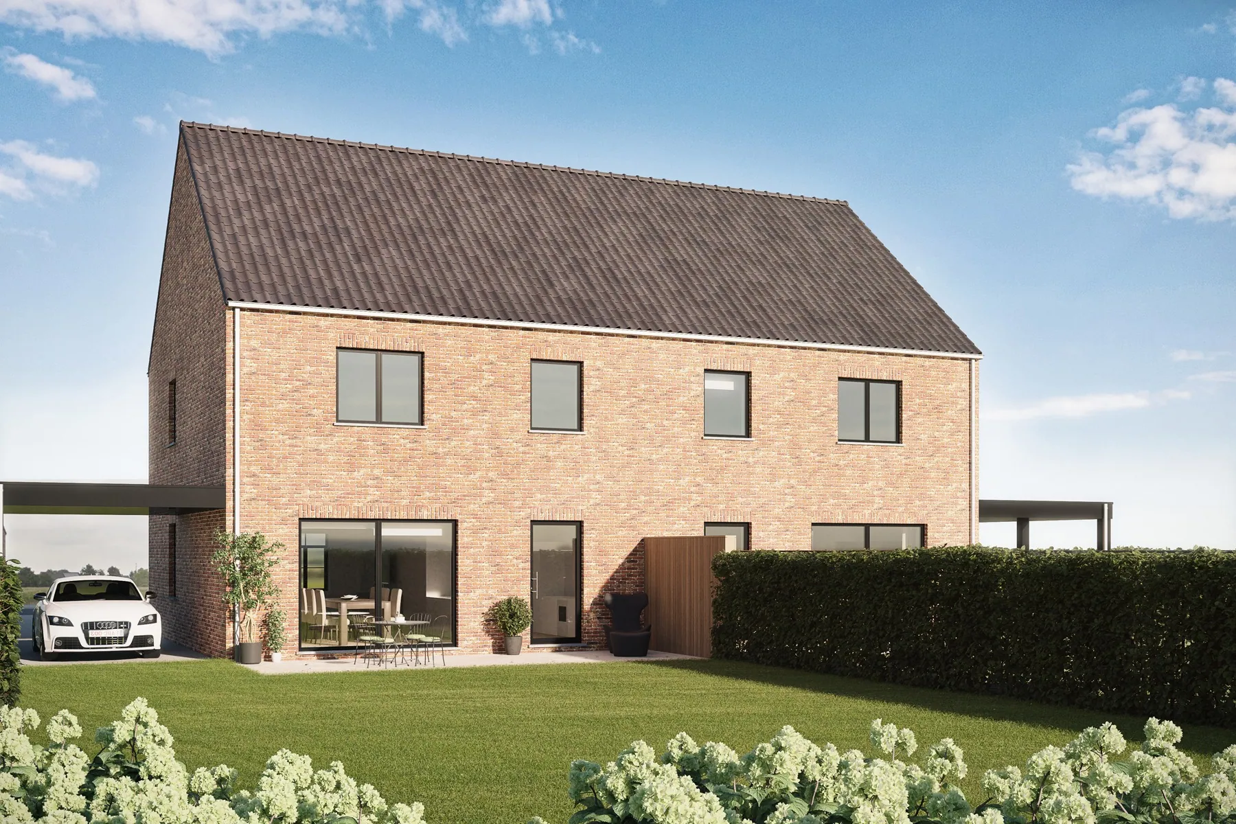 2 half vrijstaande nieuwbouw-woningen in landelijke stijl.